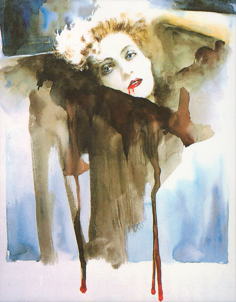 I bought this book during my "vampire" phase when I was fascinated with all things vampiric. I remember being slightly dissappointed that the illustrations leaned towards the romantic instead of the bloody but over time I've come to appreciate the subtle artistry of these exquisite watercolors. The book published in 1992 is a softcover that loosely adapts the original Bram Stoker novel and presents on every page full color watercolor illustrations by John J. Muth. None of the interior illustrations reach the level of detail and realism as that of the cover but even so are very good. I usually feature more interior scans but I fear damaging the book if I lay it on the scanner so I will only post 2 which are on the back cover and first page. I imagine that the book is long out of print but my edition is in mint condition I'm proud to say. Click for larger versions.